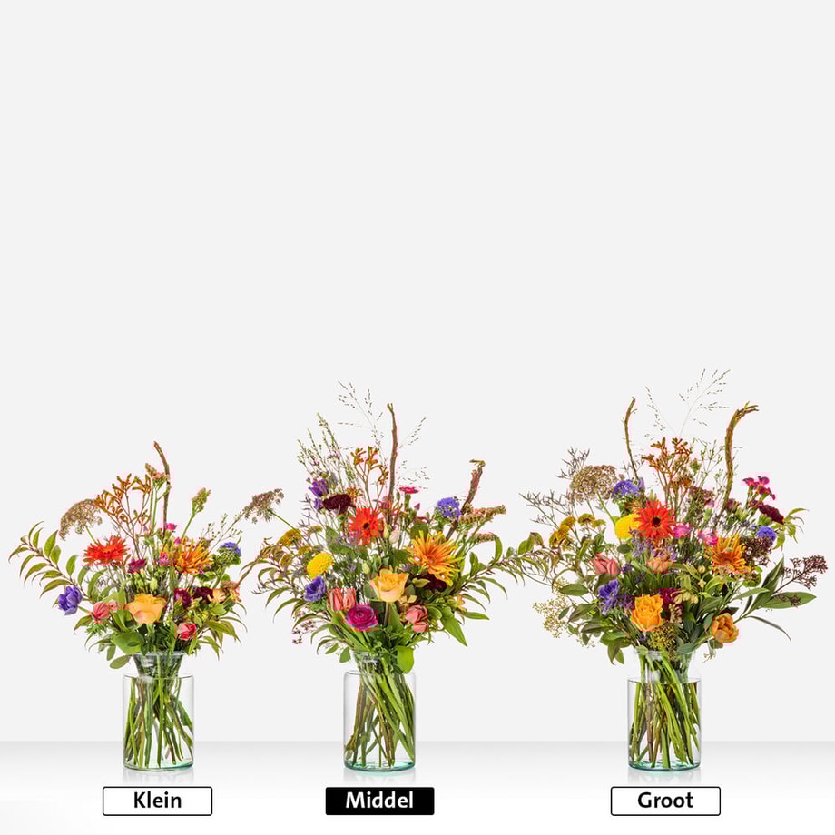 Haal de warmte in huis met dit plukboeket vol kleur. Een absolute aanrader en rijkelijk gevuld met de mooiste seizoensbloemen in de meest uiteenlopende tinten. Exclusief vaas.