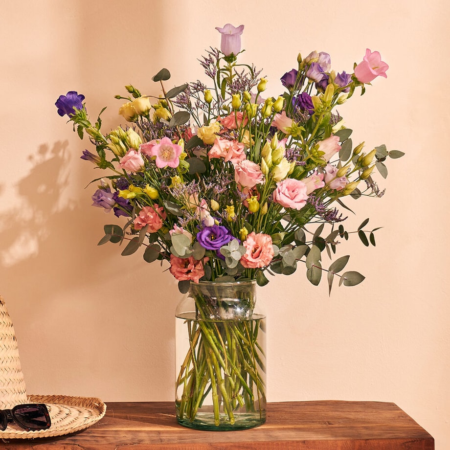 Moederdag is voor alle moeders. Van bonusmoeder tot schoonmoeder en van wensmoeder tot bijna-mama. Boeket Voor alle moeders is dan ook een ode aan alle moeders die altijd voor iedereen klaarstaan. Geef haar deze Moederdag iets speciaals met dit prachtige boeket met campanula’s en eustoma’s. Een heerlijk zomers boeket waar iedere mama heel blij van wordt. Excl. vaas.